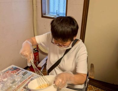 10月の余暇活動はお菓子作りをしました。フルーツを乗せたホットケーキと、畑で獲れたサツマイモを使って大...